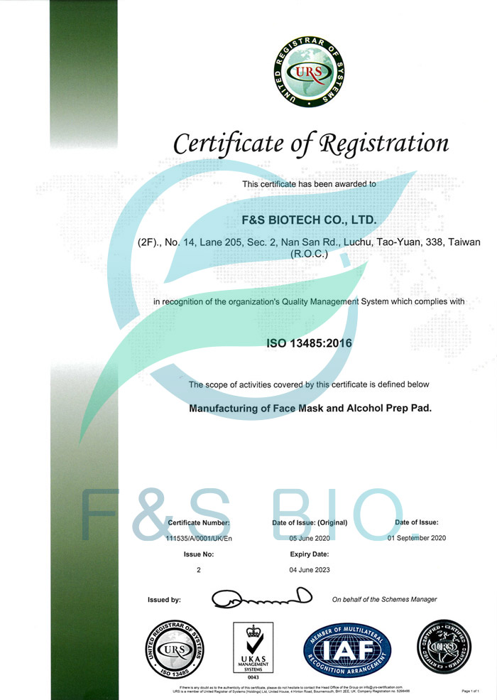 富森德堡生物科技股份有限公司秉持最高品質標準,已取得多項國際與國內重要認證,包括 ISO 9001、ISO 9001 UKAS、ISO 14001、ISO 13485:2016、美國FDA 510K、CE 及 CNS 等,充分展現我們在品質管理、環境管理及產品安全方面的卓越表現。這些認證標章不僅代表我們對品質的一貫承諾,更是我們在全球市場中贏得信賴的重要保障,讓客戶安心選擇我們的產品與服務。